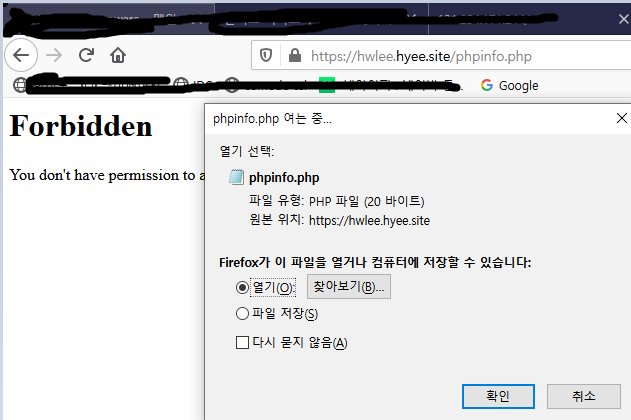 웹 브라우저의 요청에 대해 php 정보 노출 방지